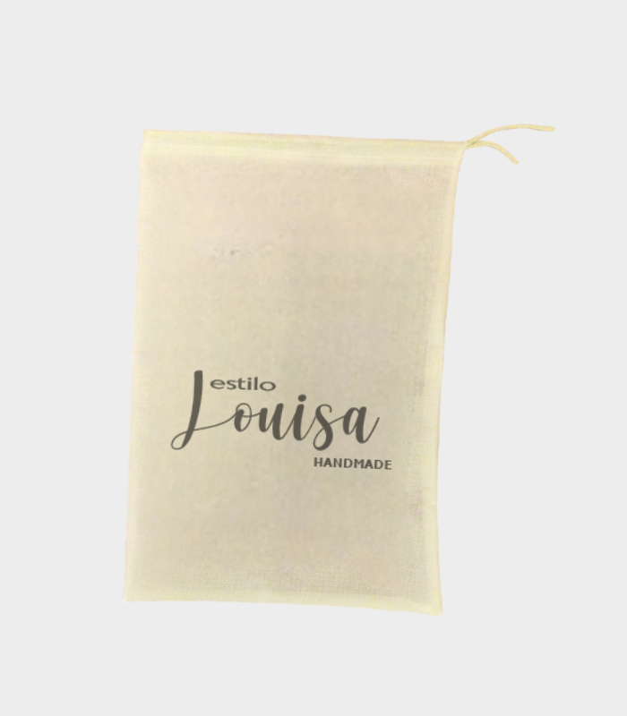 Bolsa confeccionada en friselina, 20cm de ancho x 30cm de alto con frunce clásico SIMPLE, ajuste lateral con cordón de algodón al tono. Si preferís cinta de raso color para el ajuste, podés visitar la sección