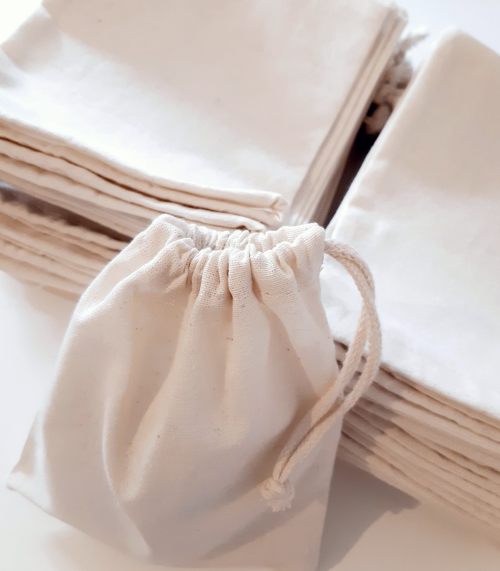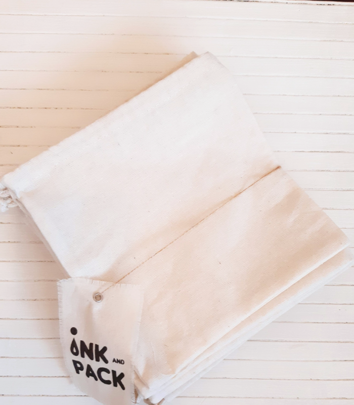 Bolsa confeccionada en lienzo de algodón, 25cm de ancho x 25cm de alto con frunce clásico SIMPLE. Para el ajuste de la bolsa, podés seleccionar cordón de algodón ó cinta de raso color. Recordá aclarar el color de la cinta en notas del pedido al realizar la compra.