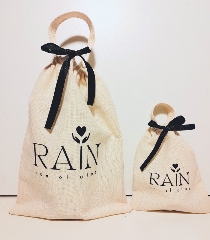 Bolsa confeccionada en lienzo de algodón, 20cm de ancho x 20cm de alto con ajuste CENTRAL con cordón de algodón al tono y pequeña MANIJA de cinta hilera. Para el ajuste de la bolsa, podés seleccionar cordón de algodón ó cinta de raso color. Recordá aclarar el color de la cinta en notas del pedido al realizar la compra.