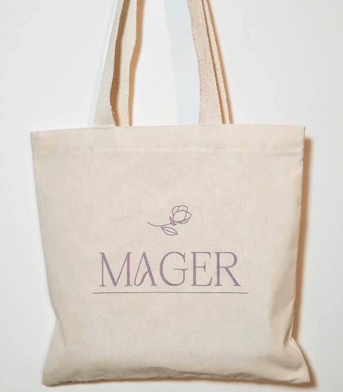 Bolsa de lienzo de 15cm de ancho x 15cm de alto, con manijas de cinta hilera de 2,5cm ancho x 40 cm de largo.