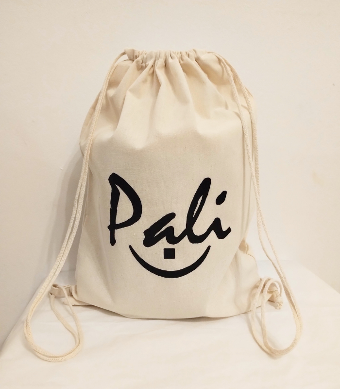 Mochila de lienzo de algodón de 30cm de ancho x 30cm de alto, con cierre frunce DOBLE con cordón de algodón.