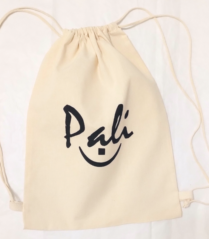 Mochila de lienzo de algodón de 35cm de ancho x 40cm de alto, con cierre frunce DOBLE y correas de cordón de algodón.
